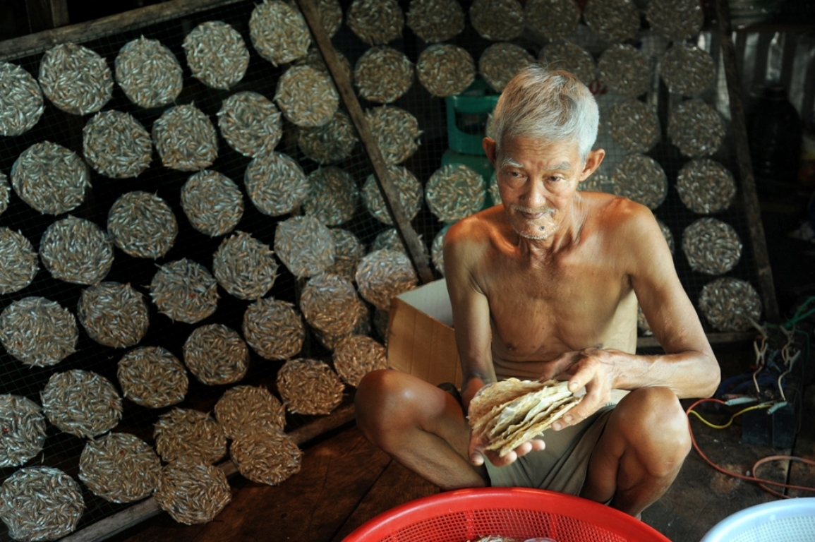Cá cơm được làm sạch, chế biến thành bánh, đóng gói bán phục vụ du khách
