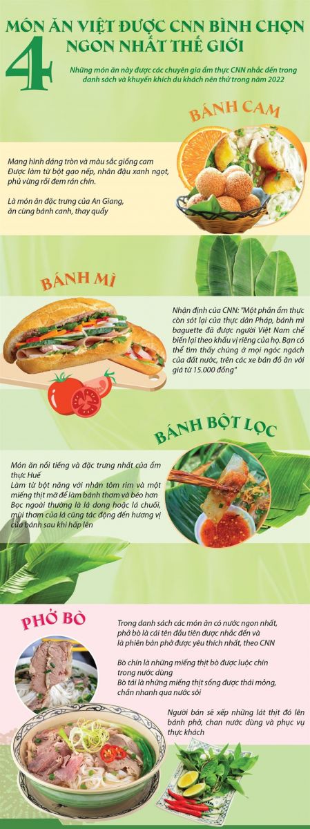 Những món ăn này được các chuyên gia ẩm thực CNN nhắc đến trong danh sách và khuyến khích du khách nên thử trong năm 2022. Việt Nam lọt top 3 nước có năng lực phát triển du lịch tốt nhất thế giới Trường Đại học Kinh doanh và Công nghệ Hà nội tổ chức lớp “Bồi dưỡng kỹ năng và khởi nghiệp” đi trải nghiệm tại doanh nghiệp
