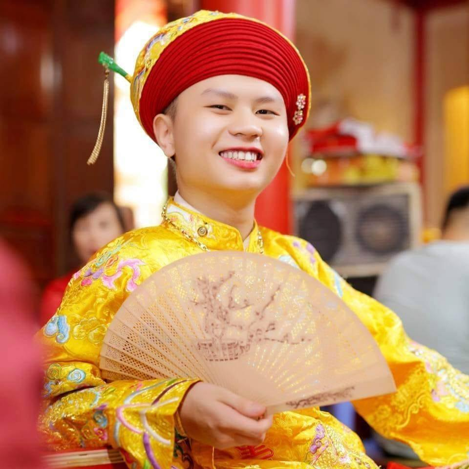 Cô dâng lên chiếc quạt trầm