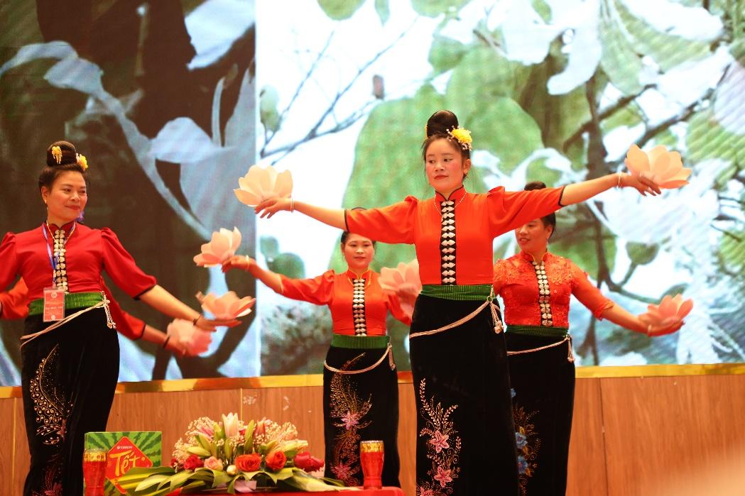 Tiết mục “Múa Hoa Ban” của các thành viên của CLB Di sản văn hóa Dân gian người Thái huyện Mường La tỉnh Sơn La