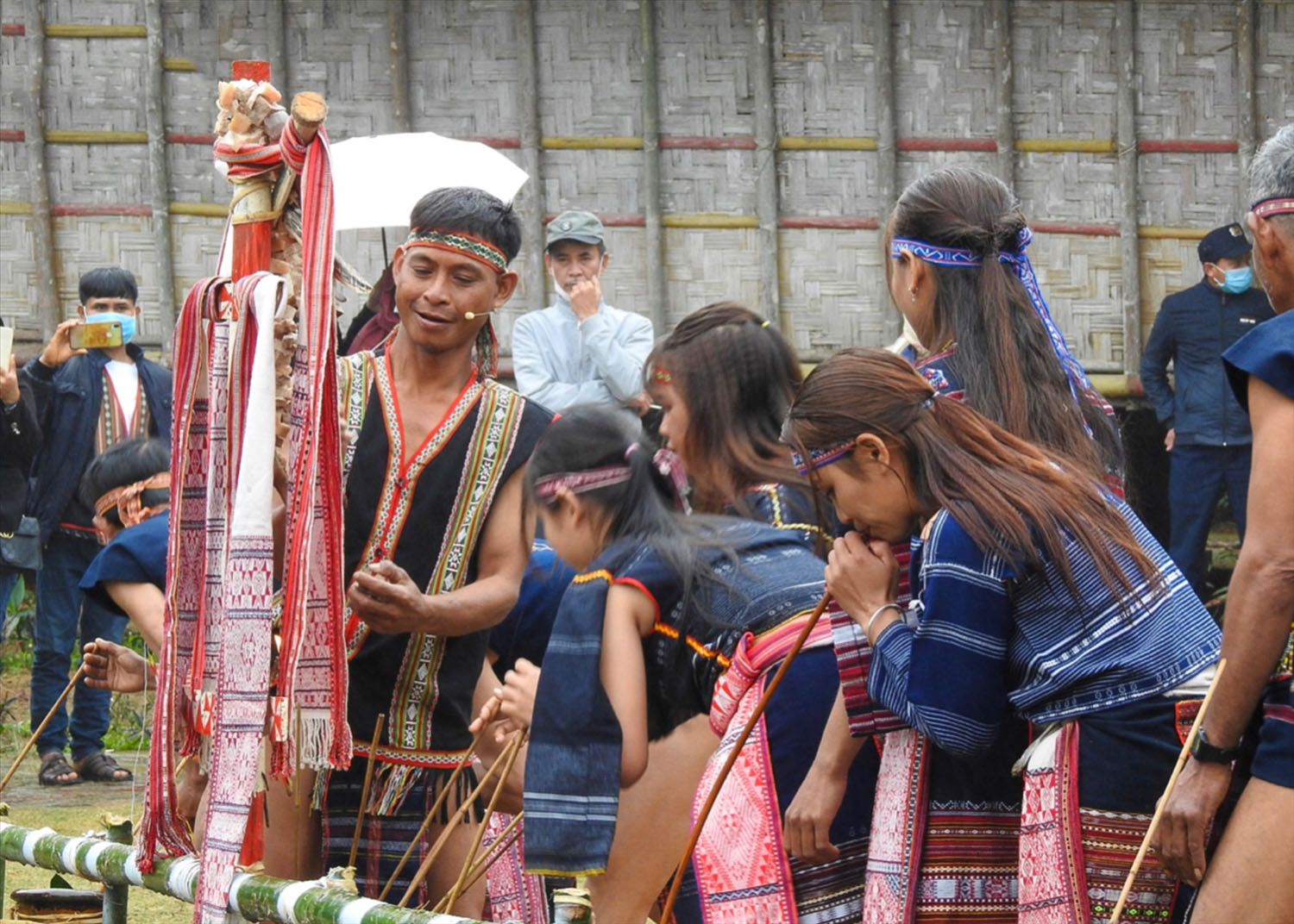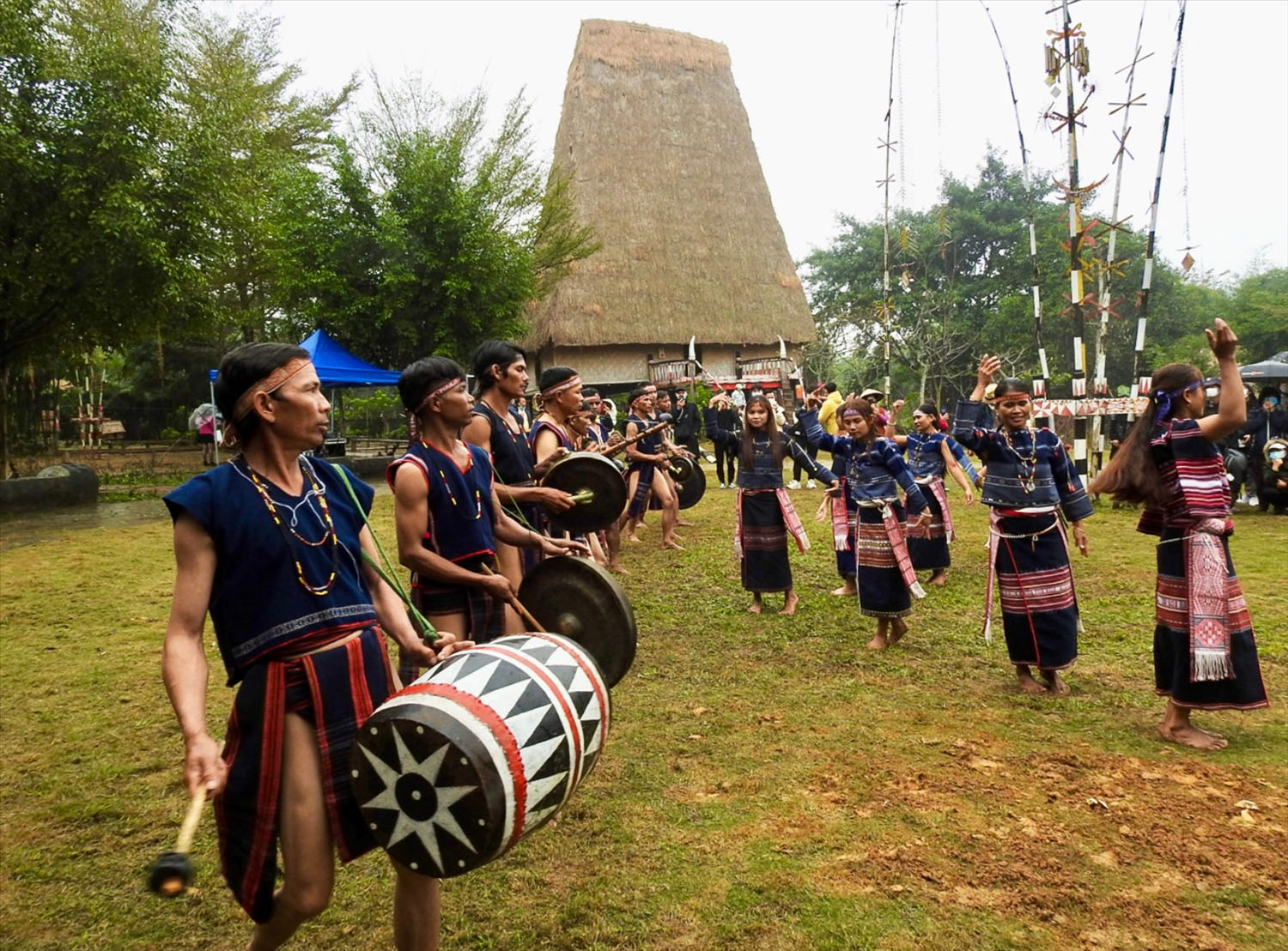 Để kết thúc phần lễ, già làng hô đánh chiêng cùng chung vui trong đám cưới… Đùng đùng đùng… tiếng trống vang lên khắp núi rừng, bản làng, đồng bào cùng đánh chiêng, nhảy múa