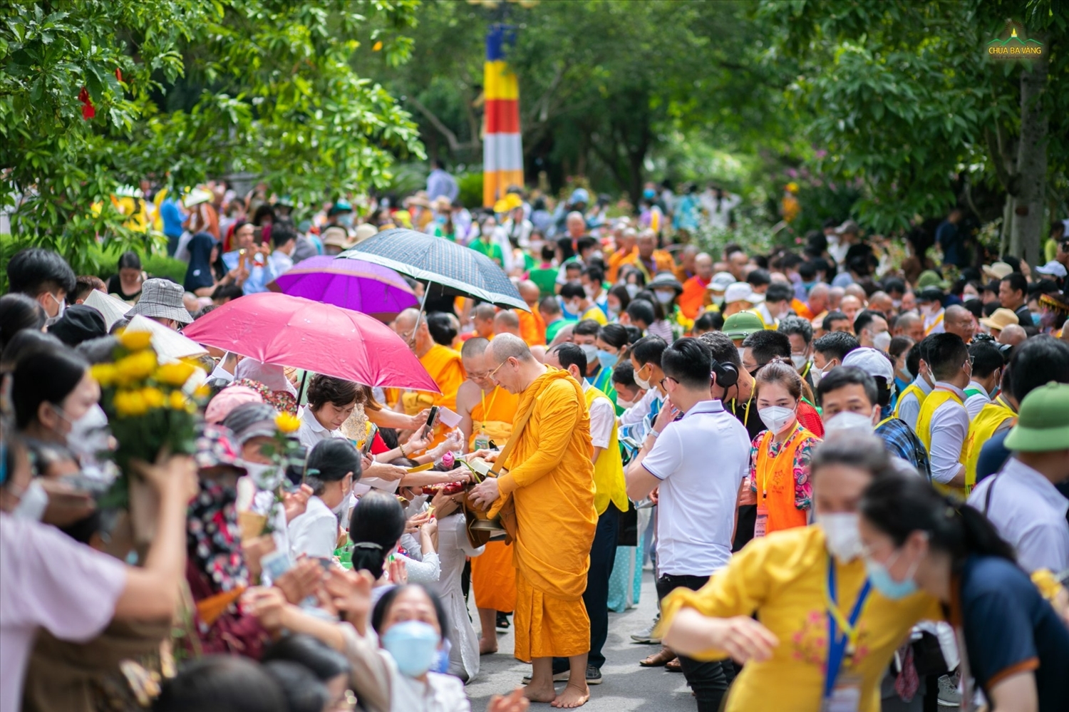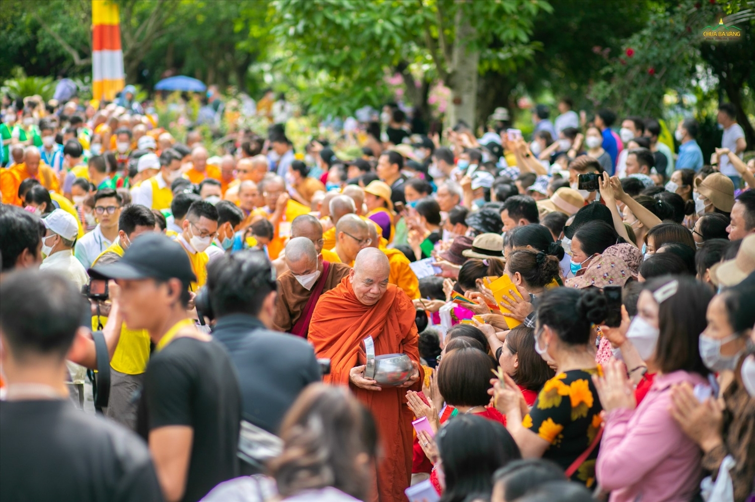 Hòa thượng Thích Thiện Tâm – Phó Chủ tịch Hội đồng Trị sự, Phó trưởng Ban Thường trực Ban Phật giáo Quốc tế Giáo hội Phật giáo Việt Nam cùng chư Tôn Hòa thượng, Thượng tọa, Đại Đức Tăng trong nước và một số nước trên thế giới như Bangladesh, Sri Lanka, Lào, Campuchia, Thái Lan khất thực trong khuôn viên chùa Ba Vàng