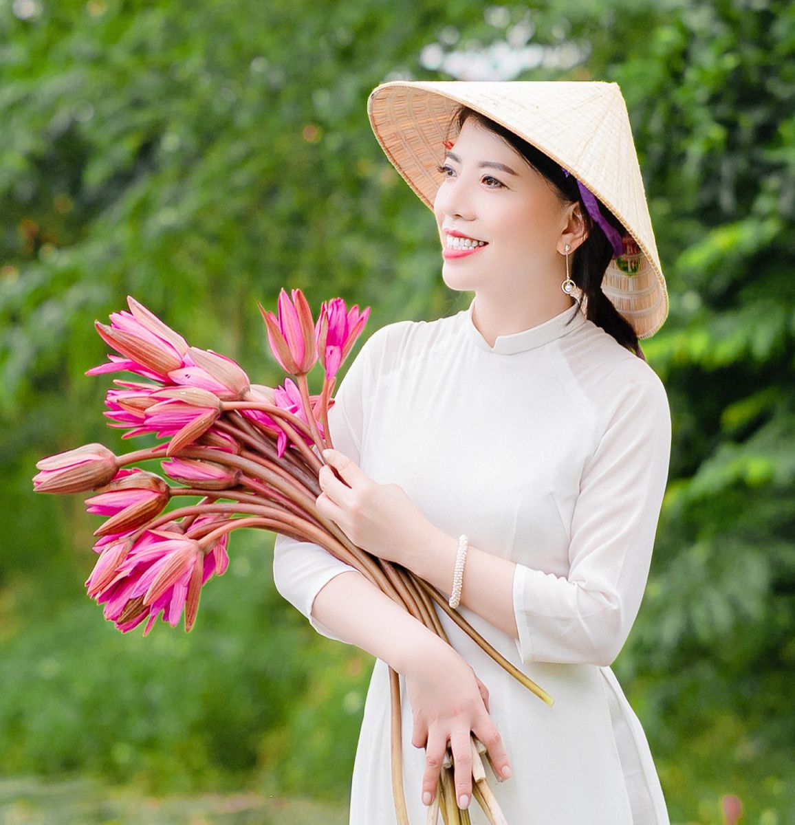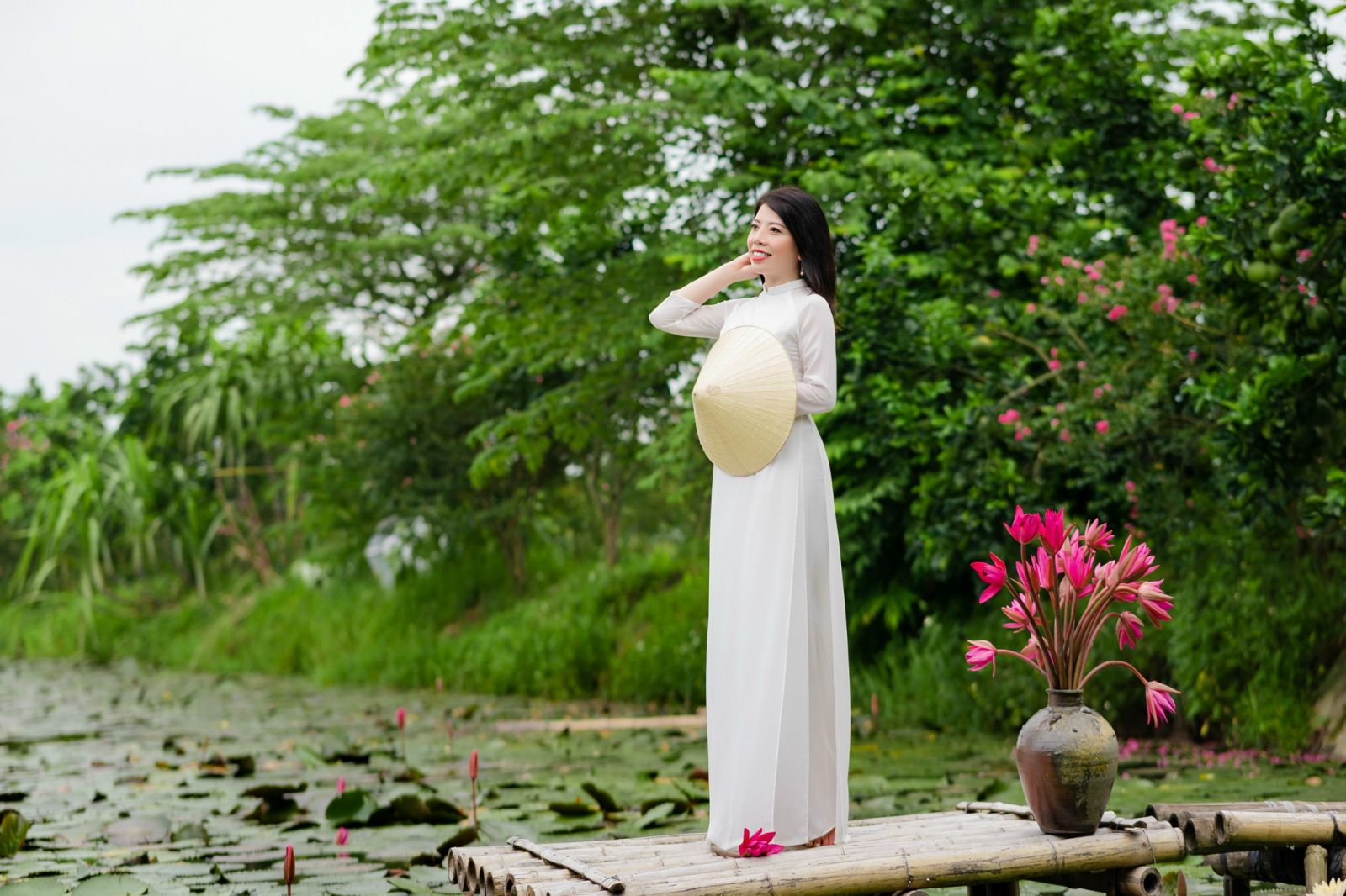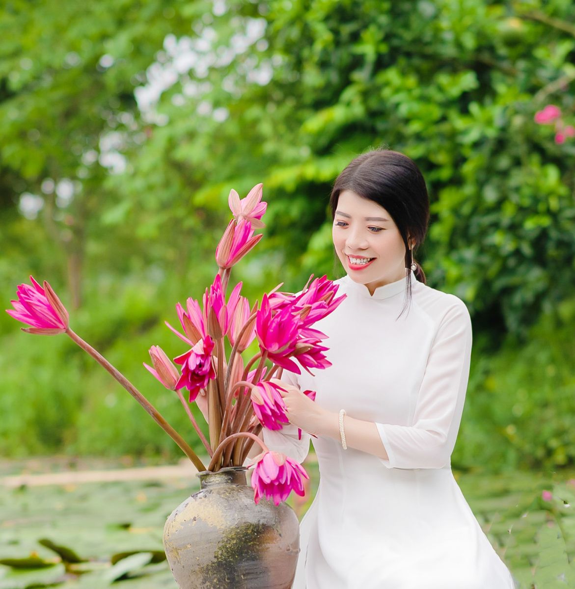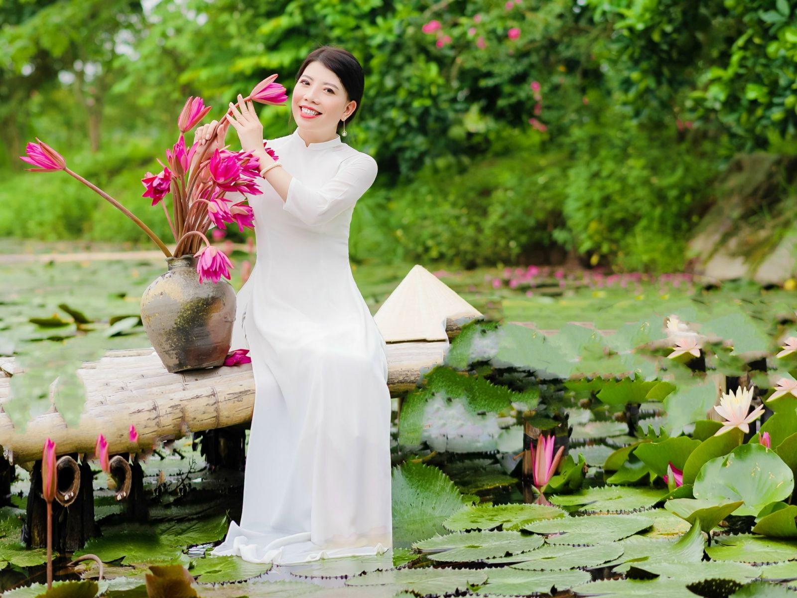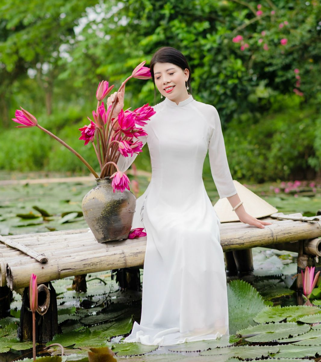 Súng hoa đỏ rực một bến sông. Ngóng lên, ngó xuống, má em hồng. Chum tròn mướt nắng, chờ mưa chõng. Thuyền đậu, lệ e, muốn rất mong… !