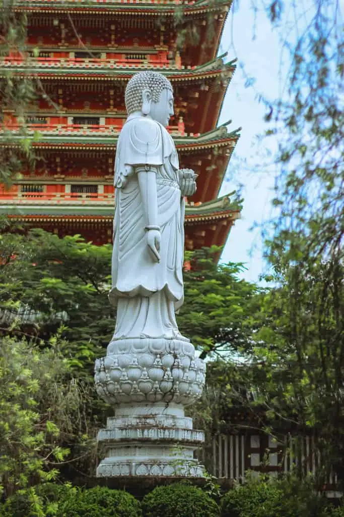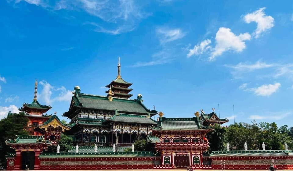 Đứng từ xa, dưới bầu trời trong xanh cùng những tia nắng vàng chiếu rọi, tòa bảo tháp lung linh hiện ra như biểu thị cho sự uy nghiêm và tôn kính. Bất kỳ vị khách nào đặt chấn đến cũng đều bị ấn tượng bởi lối kiến trúc độc đáo và mang nét đặc trưng của xứ sở mặt trời mọc Nhật Bản.