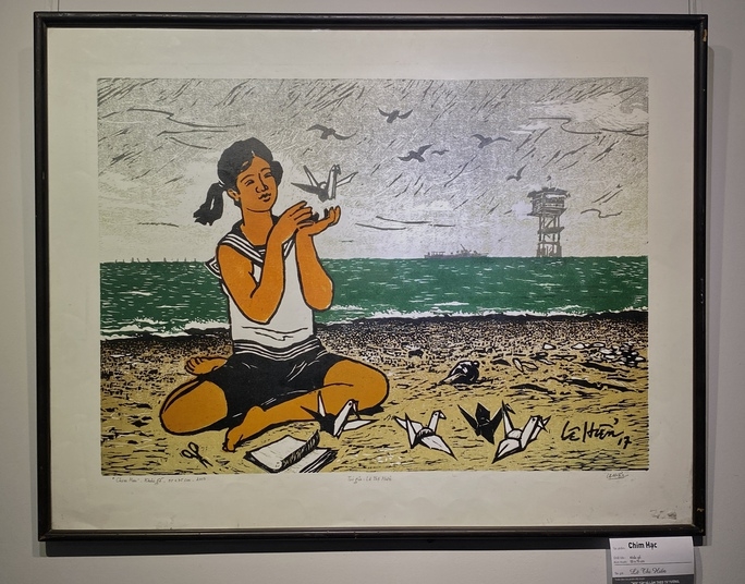 Tác phẩm “Chim Hạc” – Khắc gỗ. Tác giả: Lê Thị Hiền