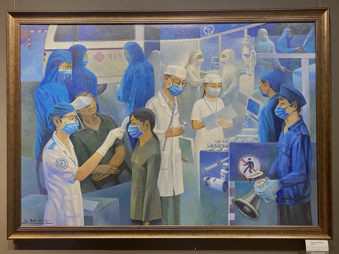 Tác phẩm “Chung sức chống dịch Covid-19” – Acrylic. Tác giả: Lê Tấn Đạt